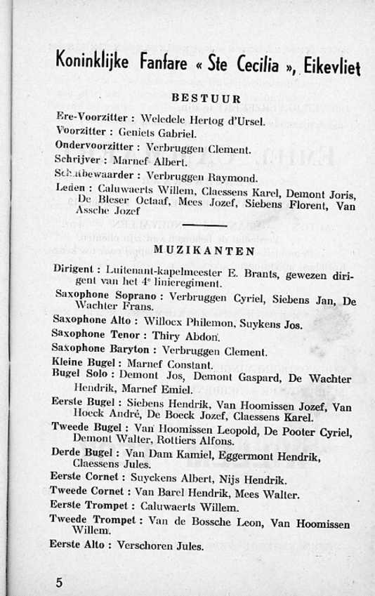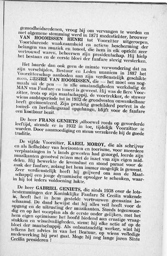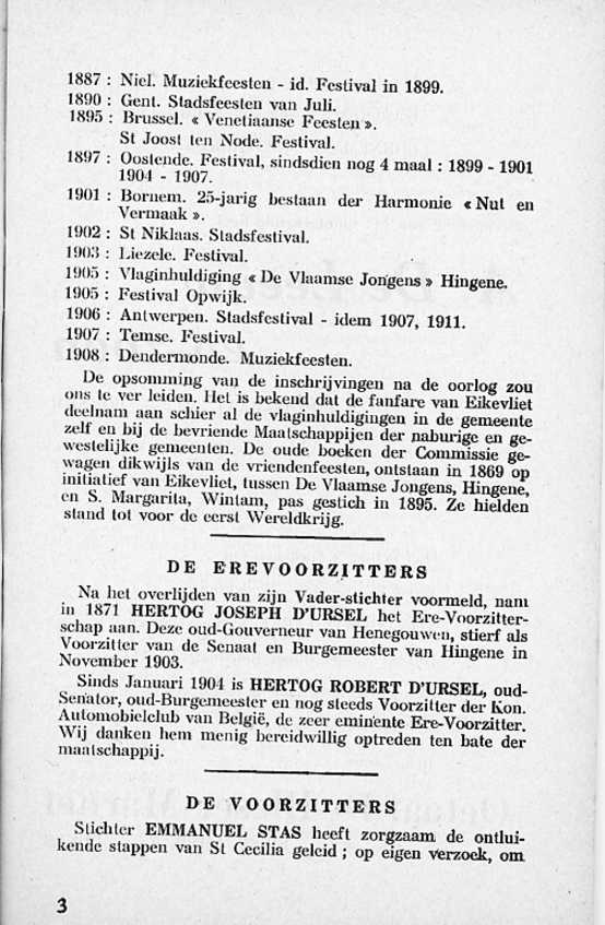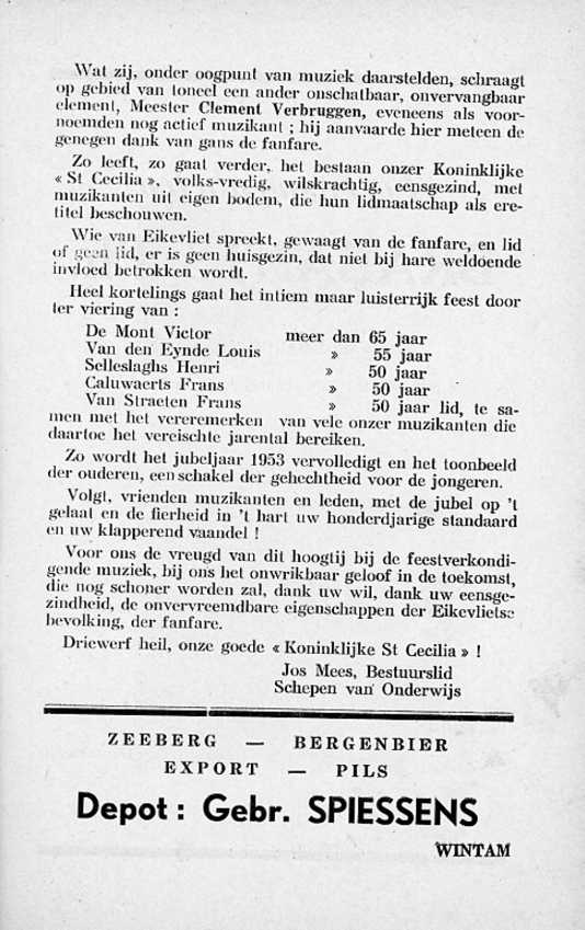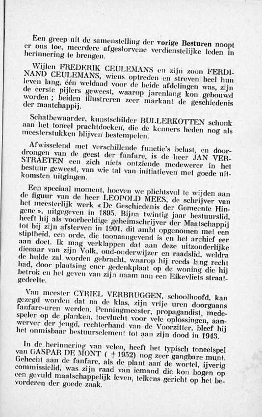 Deze feestgids werd geschreven in 1952 door Jozef Mees, bestuurslid van de fanfare en schepen van onderwijs in de gemeente Hingene.