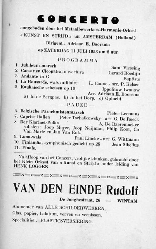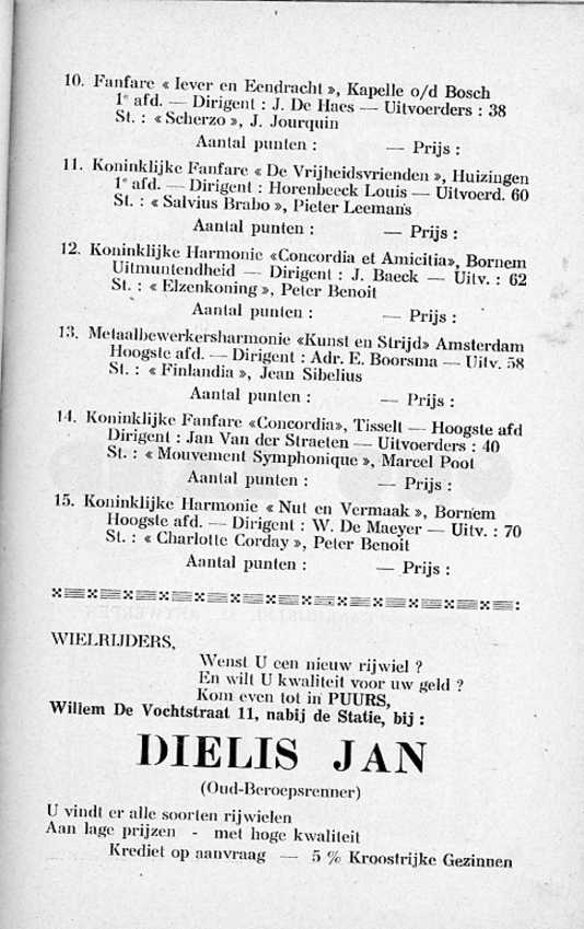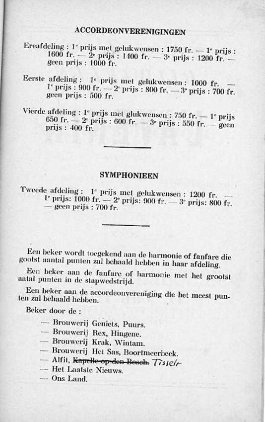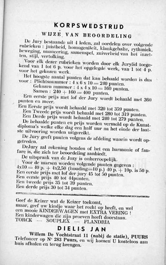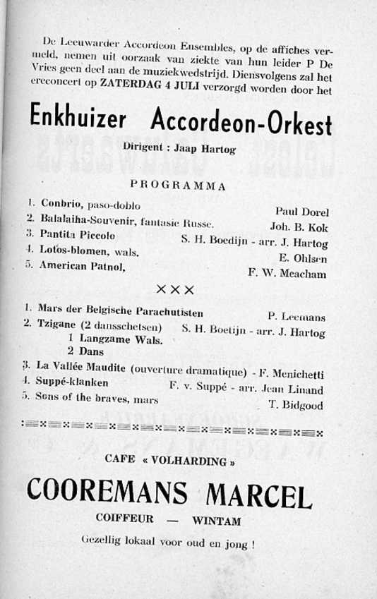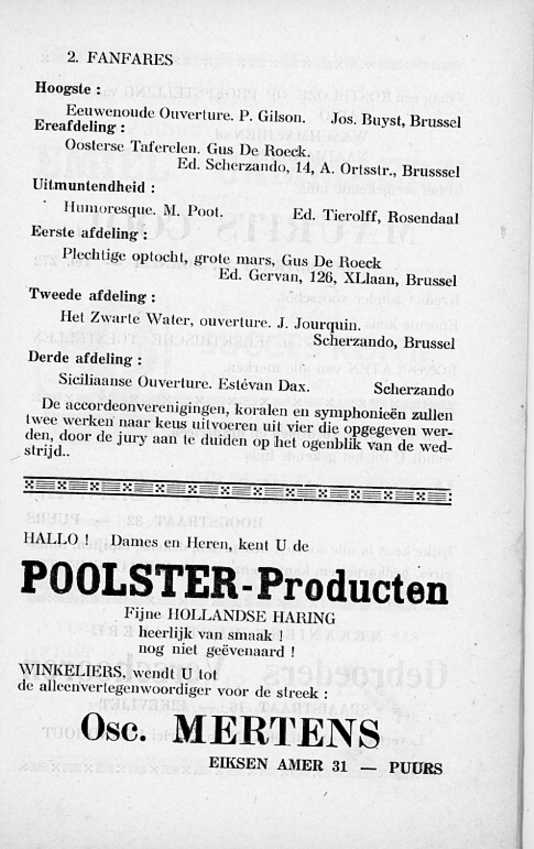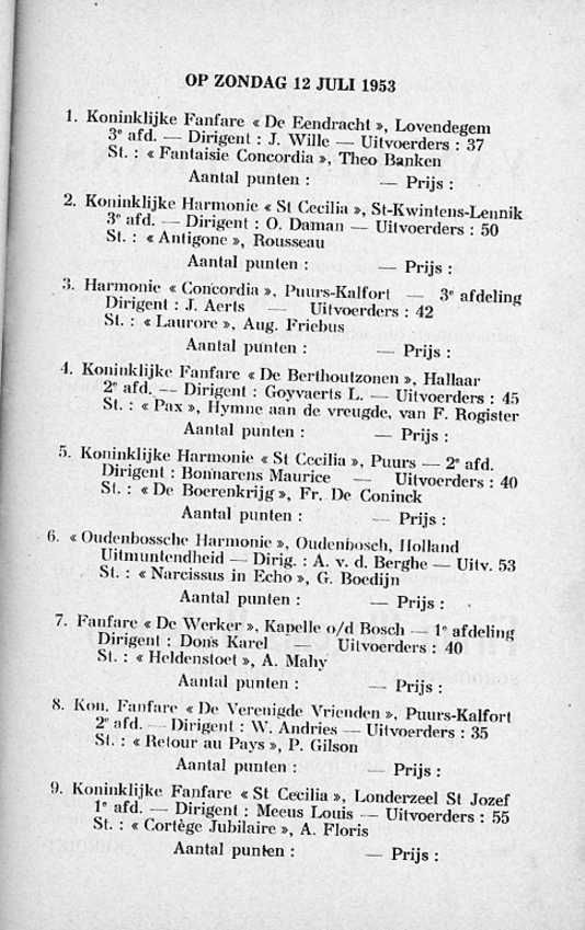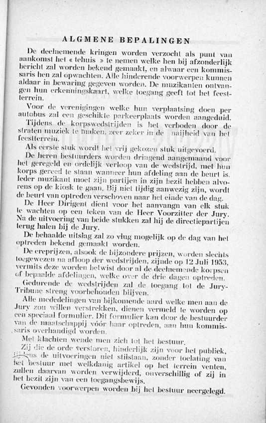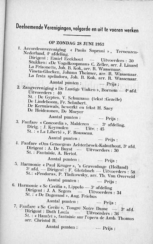 Hij beschrijft daarin alles in verband met de fanfare en gans het programma van de muziekwedstrijd.