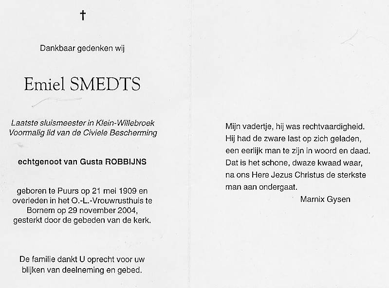 geboren te Puurs op 21 mei 1909 en overleed te Bornem op 29 november 2004 en